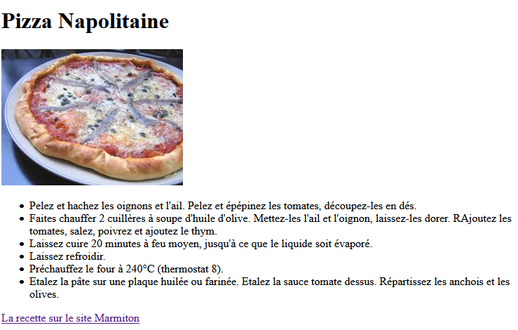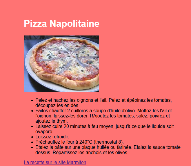 - Lien vers une recette de la pizza sur le web.
